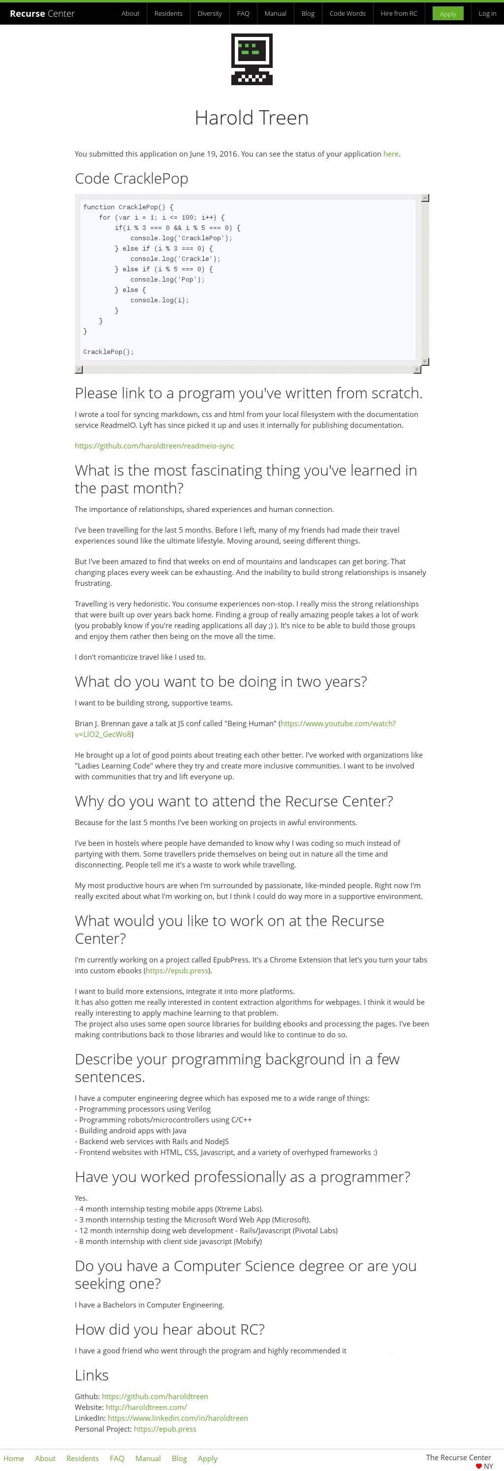Disclaimer: I don’t recruit for RC and have no insight on my applications performance. These are mere humble thoughts. 🤔